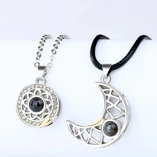 SAVE £76שרשרת שמש וירח זוגית עם תמונה מוצפנת