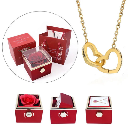 Engraved Connected Hearts Necklace In A Rose Gift Box