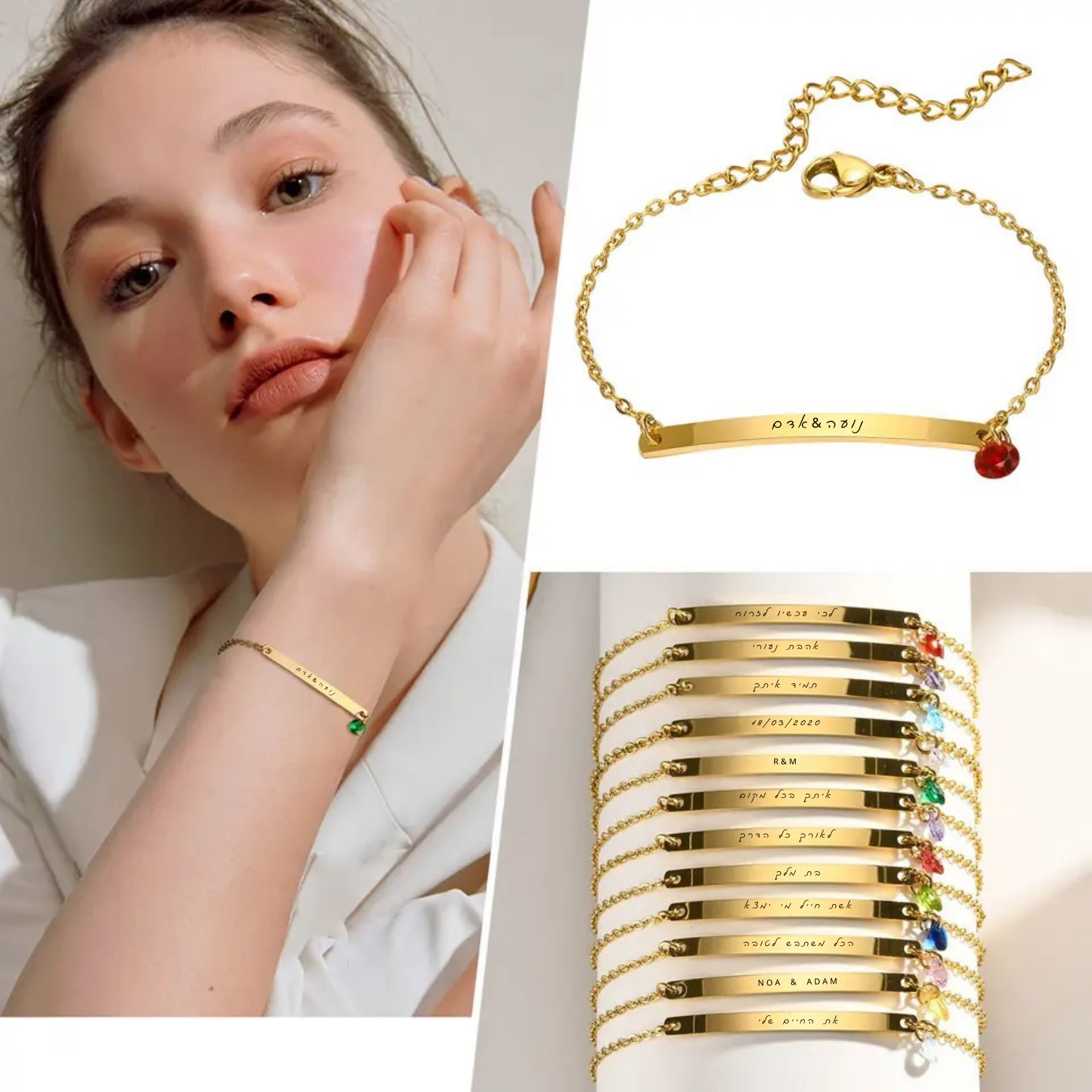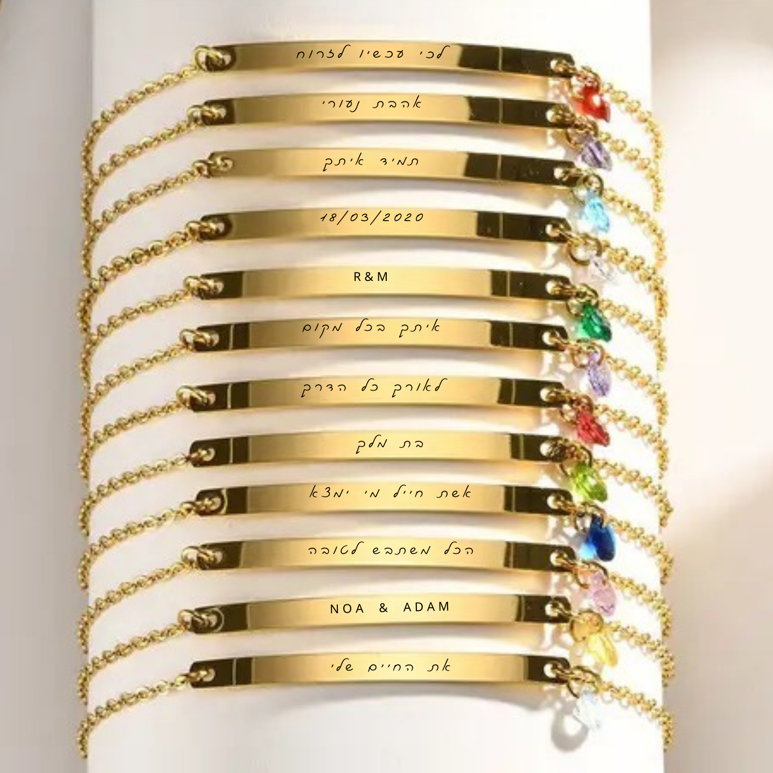 צמיד צ׳ארמס לבבות עם חריטה אישית