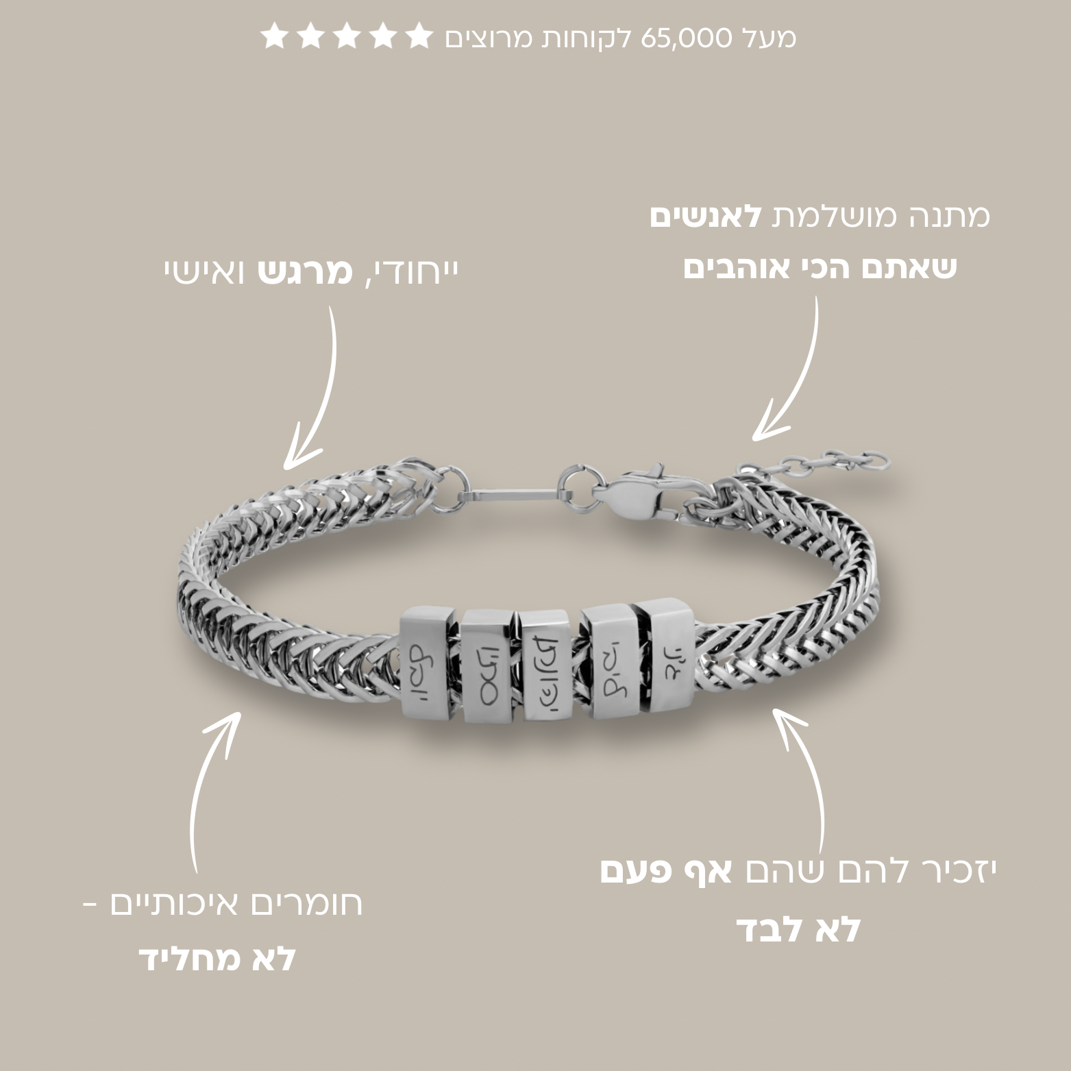 ממליצה ממליצה ממליצה!! קניתי לבעלי צמיד עם שמות הילדים שלנו והוא בכה מהתרגשות אני בחיים לא ראיתי אותו ככה!!! אני כלכך שמחה שנתקלתי בכם אתם אלופים! תודה על שירות מסור ותכשיט מרגש!