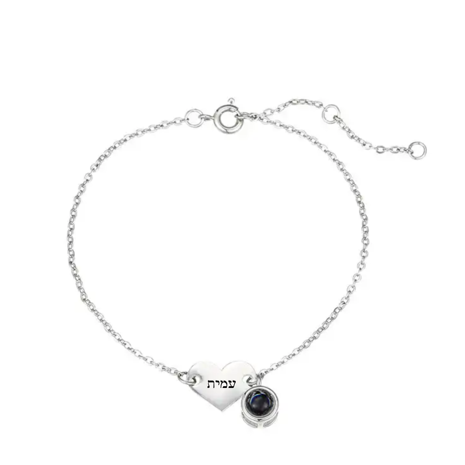 צמיד לב עם חריטה אישית ותמונה מוצפנת