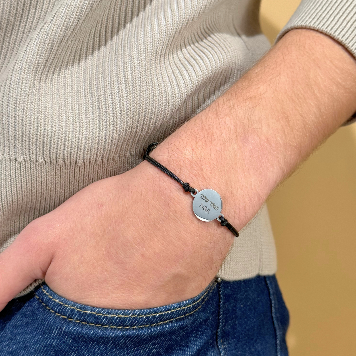 צמיד חוט ארי עם חריטה אישית