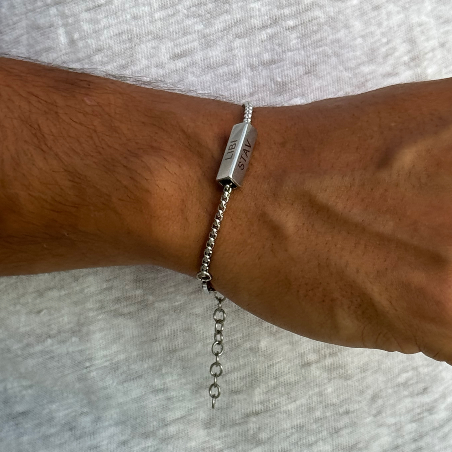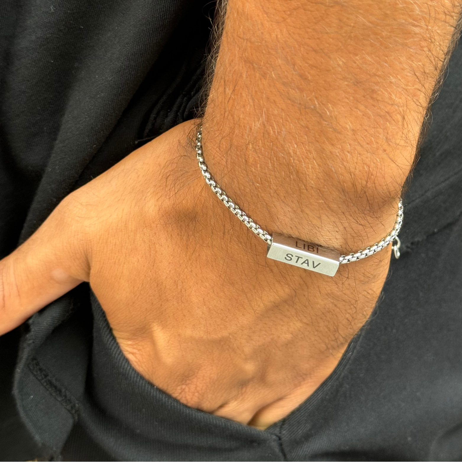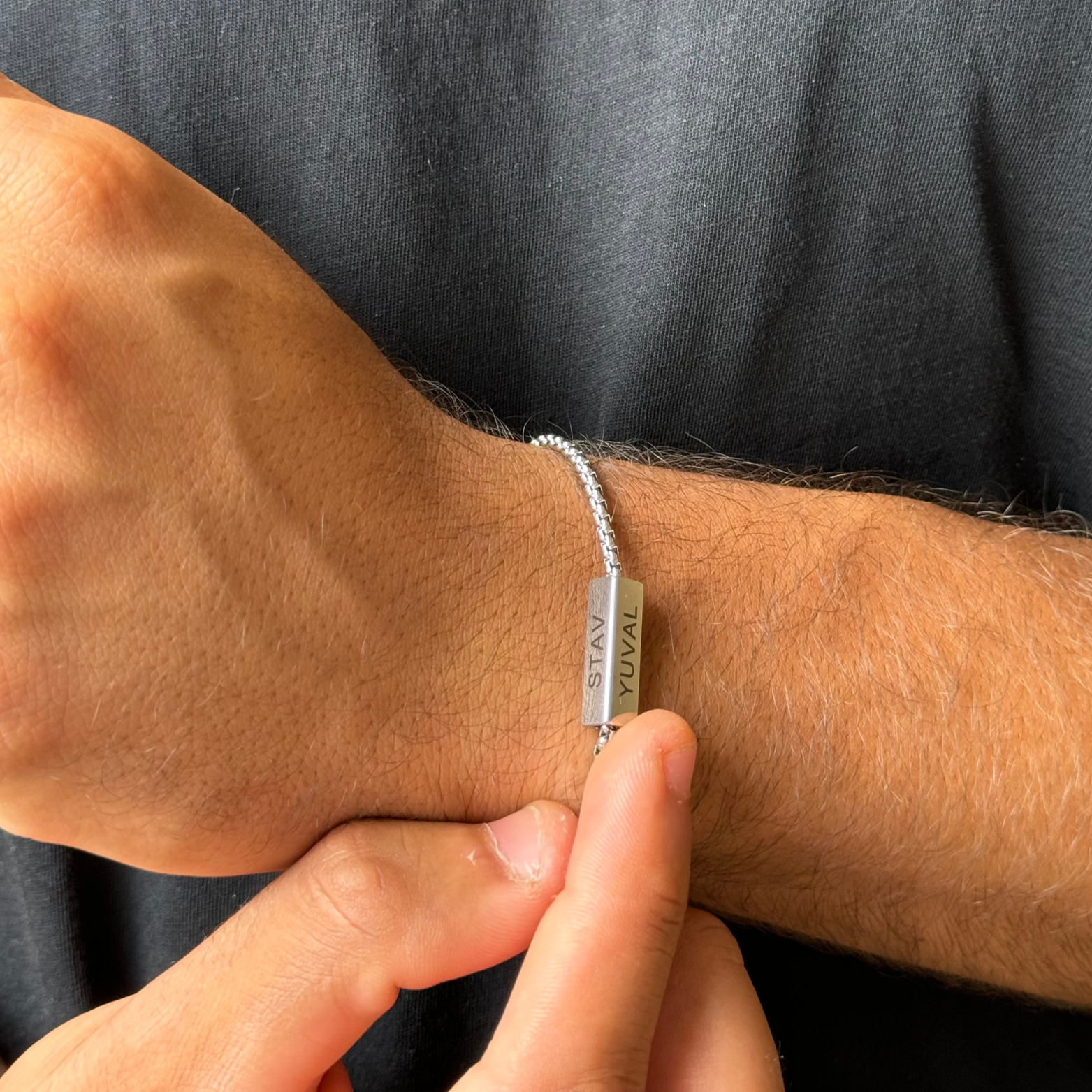 צמיד קלאסי ומהמם לגבר המשלב תליון עם אפשרות חריטה ב 4 צדדים שונים .