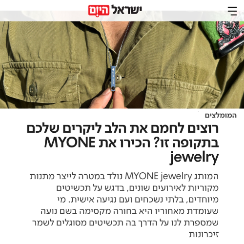 אני חייבת להמליץ על מותג בשם myone הבת שלי קנתה לי מהם טבעת שהיא נראת ממש כמו חיבוק וזו המתנה הכי סנטימנטלית שקיבלתי! היא איכותית מאוד ומרגשת. מגיע לכם פרגון ענק!